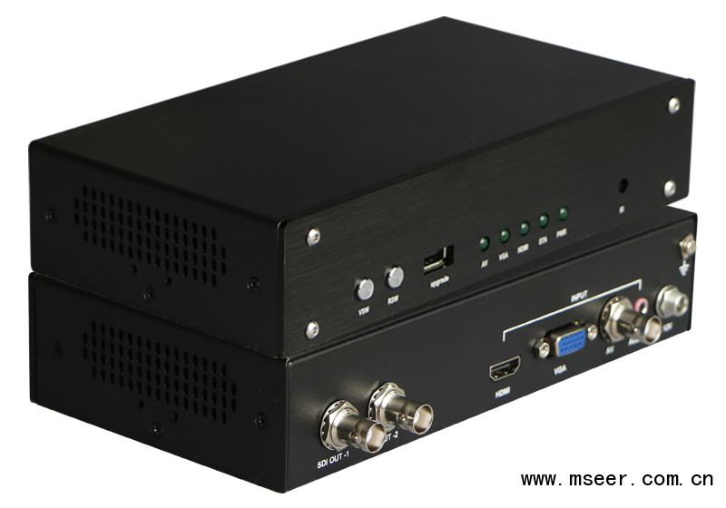 MHTS101是一款多功能轉(zhuǎn)換器。專用于將單路高清晰多媒體接口HDMI或VGA或模擬AV(CVBS)信號(hào)轉(zhuǎn)換為高清數(shù)字分量串行接口SDI信號(hào)的設(shè)備。該設(shè)備集成SDI發(fā)送器及HDMI解調(diào)器,可方便地將HDMI(VGA、CVBS)信號(hào)轉(zhuǎn)為SDI信號(hào),同時(shí)會(huì)將HDMI所帶音頻信號(hào)分離轉(zhuǎn)換后嵌入到SDI信號(hào)中,或?qū)GA,AV(CVBS)外置音頻嵌入到SDI信號(hào)中,以實(shí)現(xiàn)聲音及圖像同步傳輸。用戶可以強(qiáng)制指定SDI輸出格式,以適應(yīng)不同應(yīng)用環(huán)境。產(chǎn)品主要用于高清視頻信號(hào)遠(yuǎn)距離傳輸,安防監(jiān)控視頻信號(hào)遠(yuǎn)距離傳輸、大型演出中高清視頻信號(hào)傳輸?shù)?/span>