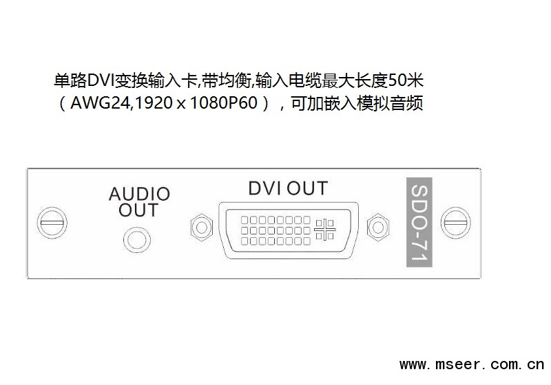 SDO-71 DVI單通道變換輸出卡,可設(shè)置成HDMI信號(hào)輸出,配合SMD主機(jī)使用,采用獨(dú)立板卡設(shè)計(jì),每塊卡支持1路DVI-D輸出,解嵌出模擬音頻,支持變換至最高1920x1200P60的數(shù)字高清圖像傳輸.