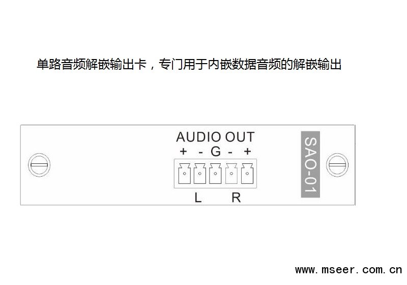 SAO-01 Audio單通道解嵌輸出卡,配合SMD主機(jī)使用,采用獨(dú)立板卡設(shè)計,每塊卡支持1路雙聲道平衡Audio輸出,專門用于內(nèi)嵌數(shù)據(jù)音頻的解嵌輸出.