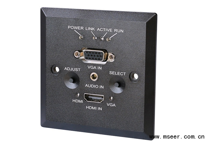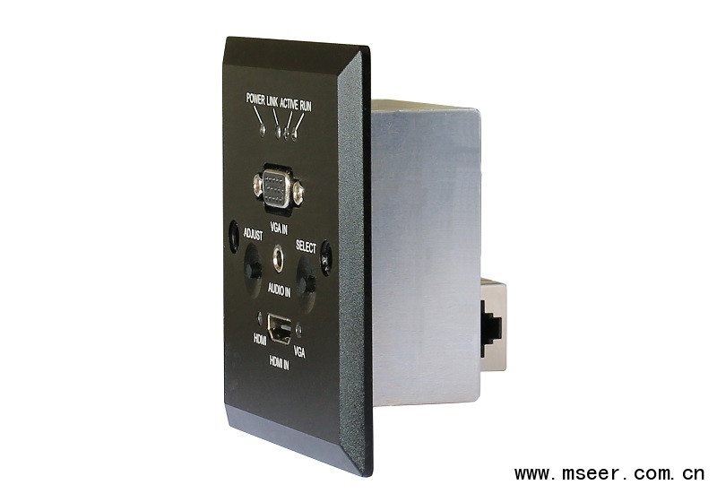 本系列產(chǎn)品包括標(biāo)準(zhǔn)86型接口器模塊(可以墻插和地插形式安裝)及桌面接口器(桌插)兩種類型。具備HDMI和VGA兩路輸入自動選擇(HDMI優(yōu)先)之功能,并轉(zhuǎn)換成HDbaseT信號發(fā)送輸出,可通過單根CAT5電纜將HDMI或VGA的視頻、音頻信號中的任意1路最遠(yuǎn)發(fā)送至100m遠(yuǎn)的接收端。它可將輸入的模擬視頻及音頻信號數(shù)字化,實現(xiàn)數(shù)字高清信號的遠(yuǎn)距離無損傳輸,采用運(yùn)端PoL供電技術(shù)、方便安裝布線。