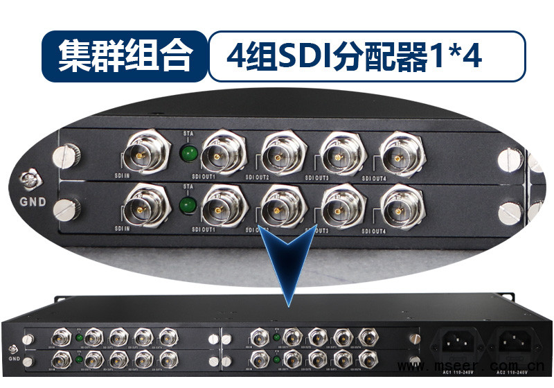 ●將4組3G-SDI分配器集成在一個標(biāo)準(zhǔn)機箱(1U)中,能將4路高清視頻,每路分別無損分配至4個視頻顯示設(shè)備;